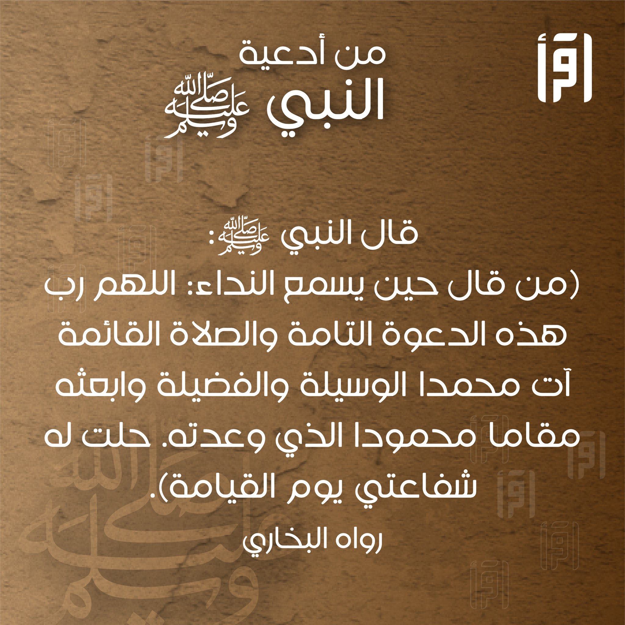 اللهم رب هذه الدعوة التامة والصلاة القائمة آت محمدا الوسيلة والفضيلة وابعثه مقاما محمودا الذي وعدته